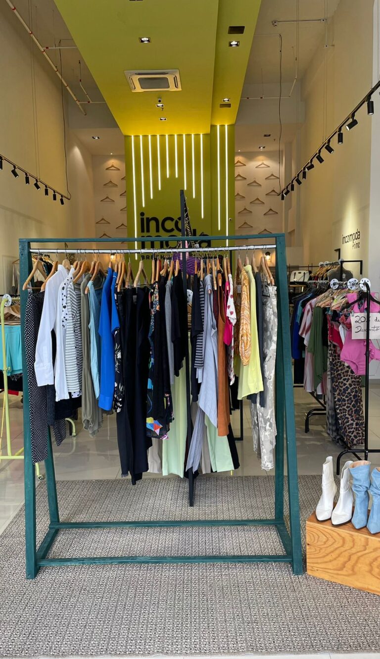 A Incomoda é uma marca com essência sustentável, suas lojas são modernas e muito cheirosas, o que motiva mulheres a desapegar e a comprar peças de segunda mão sem preconceito.